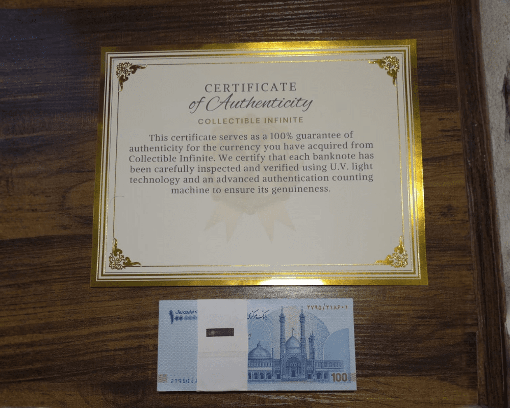 50,000,000 Iranian Rial - 1,000,000 x 50 Uncirculated Authenticated Notes (For Collectors)50,000,000 Iranian Rial – 1,000,000 x 50 Uncirculated Authenticated Notes (For Collectors)